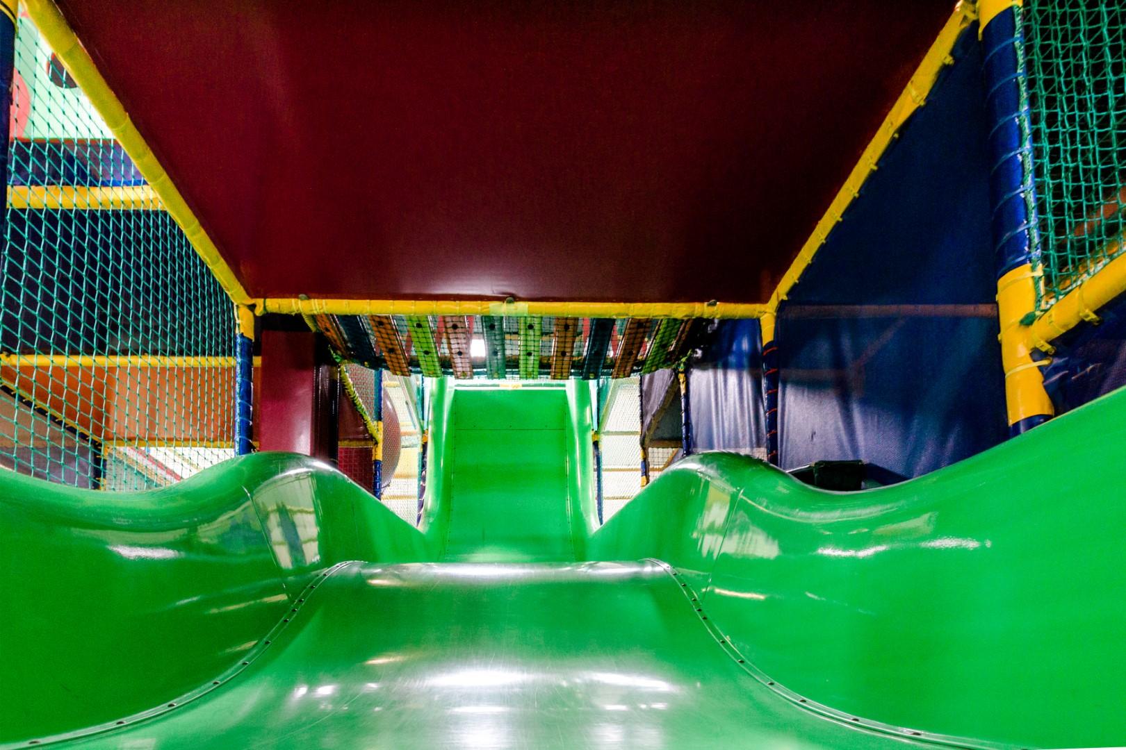 Jullie jongste kapoenen kunnen zich uitleven met de ballenkanonnen, klimmuren, glijbanen, trampolines en de stijlste schuif - van de grote regio.